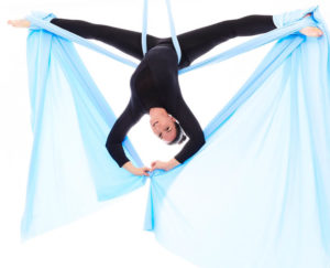Das Vertikaltuch (bekannt unter dem englischen Begriff Aerial Silks) ist ein langes Stofftuch aus Feinjersey, das in der Mitte mit einer Vorrichtung an der Decke befestigt ist.